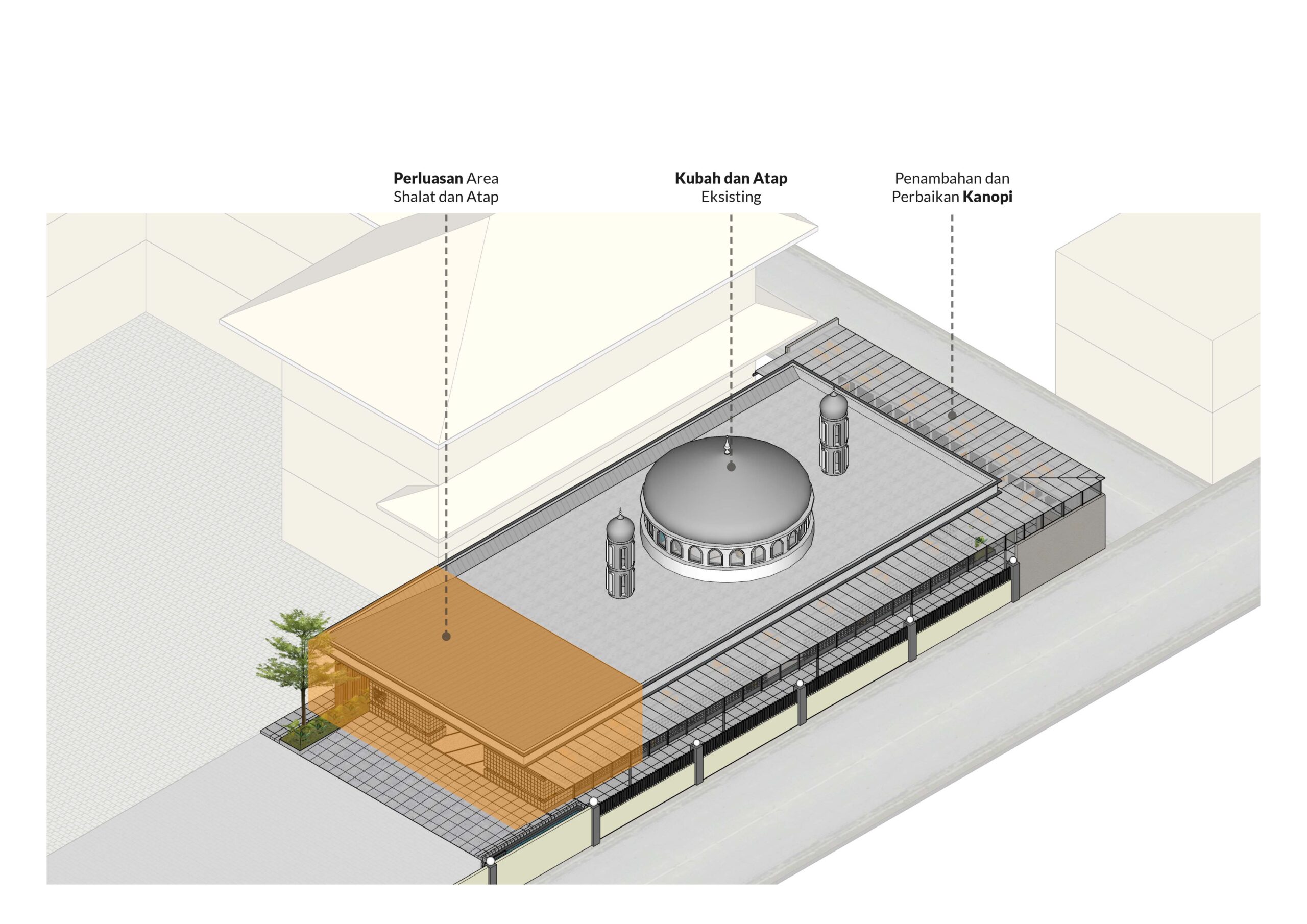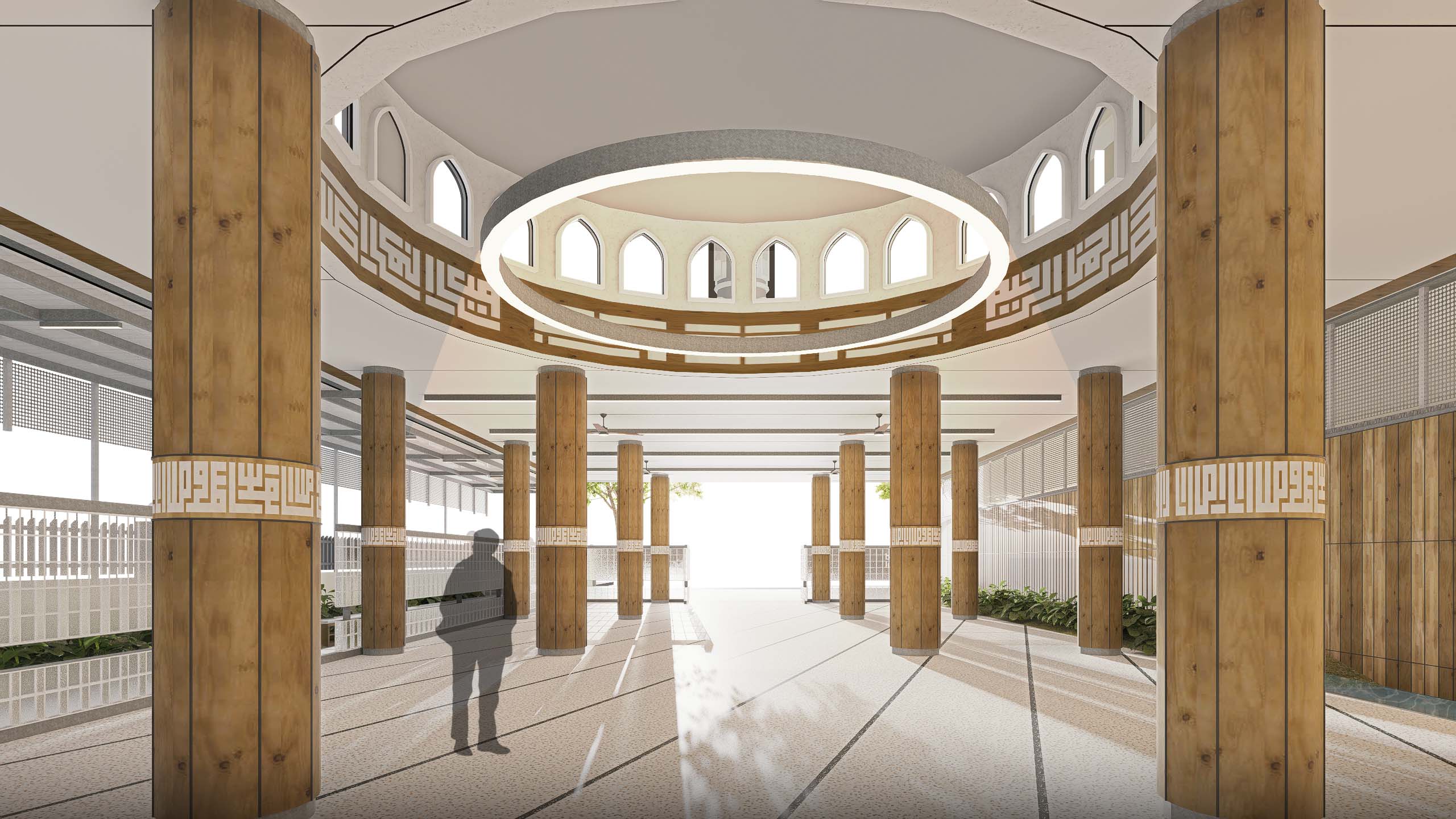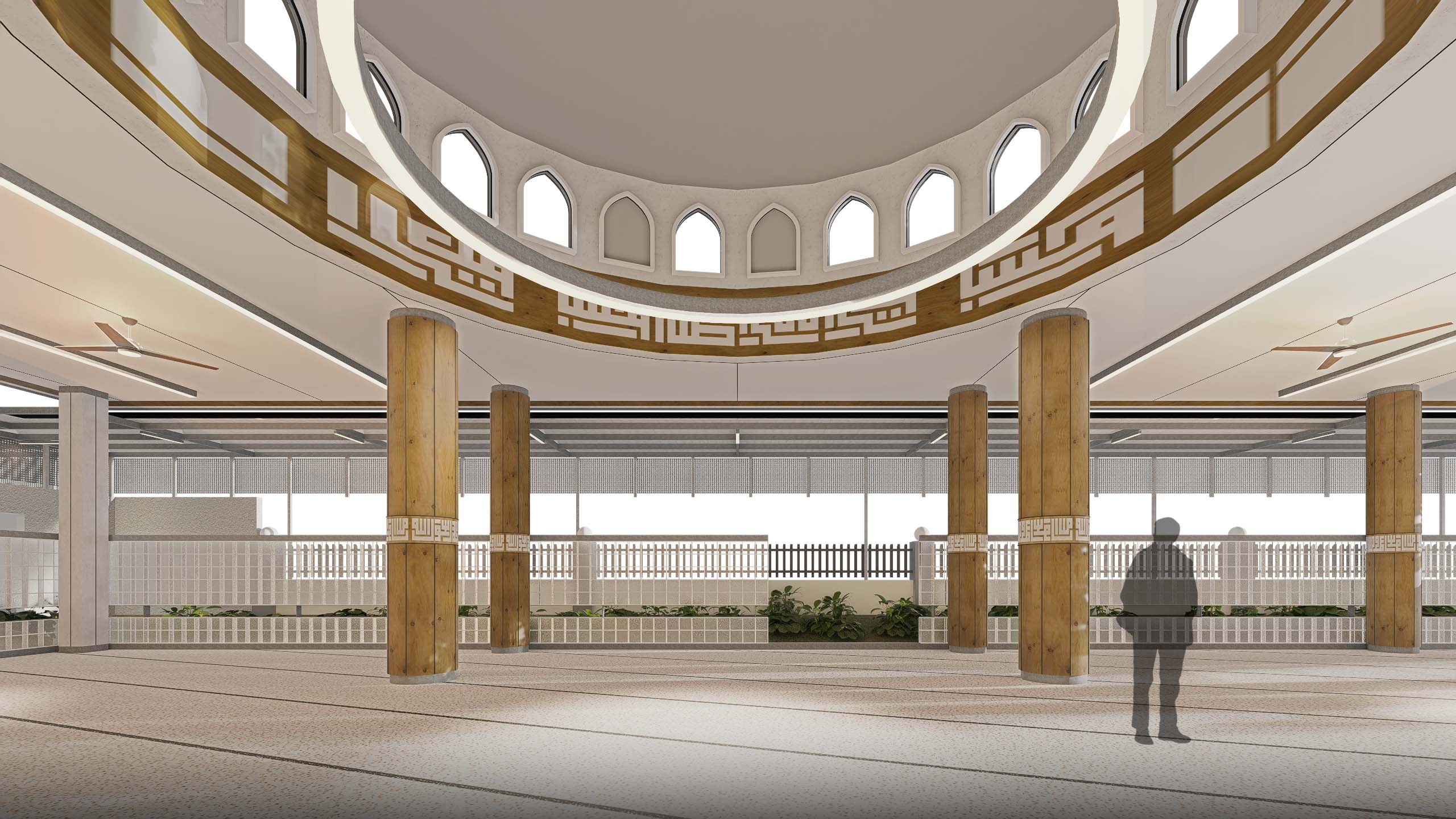 Architecturally, the renovation preserves distinctive elements of the existing structure, such as the roof and dome, honoring the mosque’s original identity. Additionally, solid walls surrounding the prayer area are replaced with semi-transparent partitions to optimize natural lighting, fostering a brighter and more open ambiance.