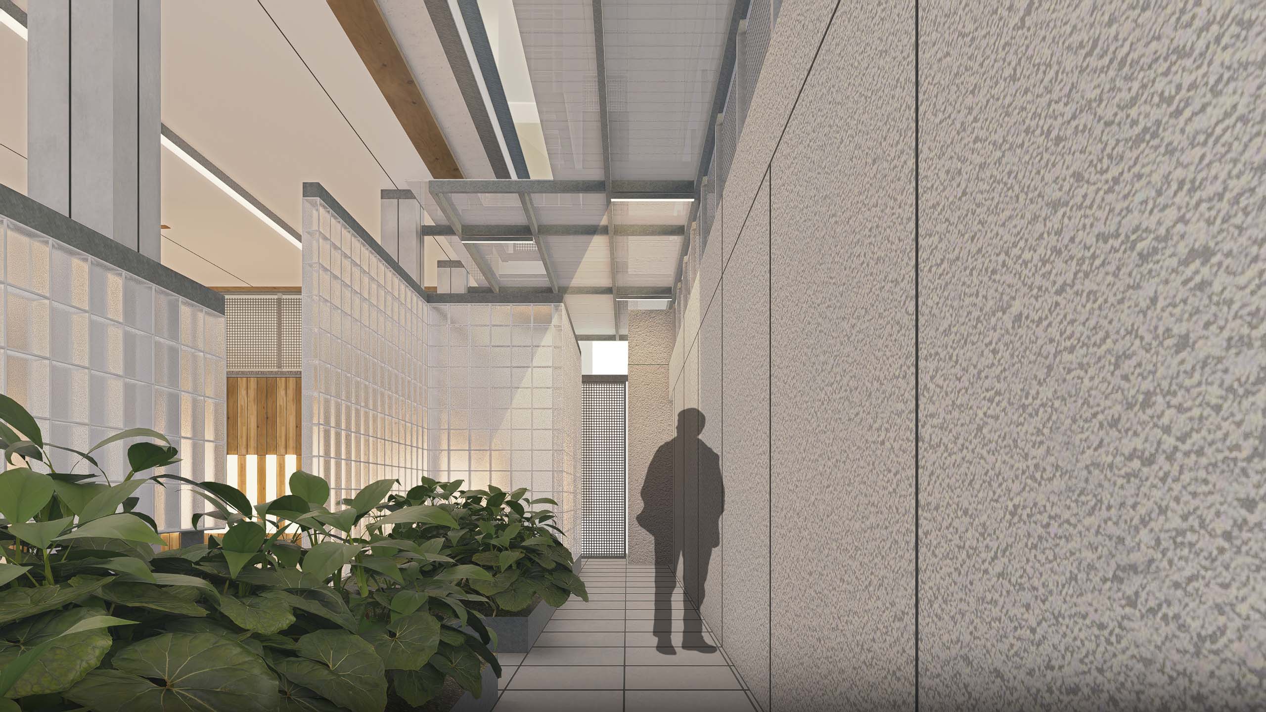 The semi-transparent walls implemented in the building serve not only as elements for natural lighting but are also designed to enhance passive air circulation. With sufficient openness, these walls facilitate air exchange between the interior and exterior, creating a cooler and more comfortable environment without relying on mechanical systems. Furthermore, this design strengthens visual and physical connectivity between indoor and outdoor spaces, making the building more open and welcoming as a public space.