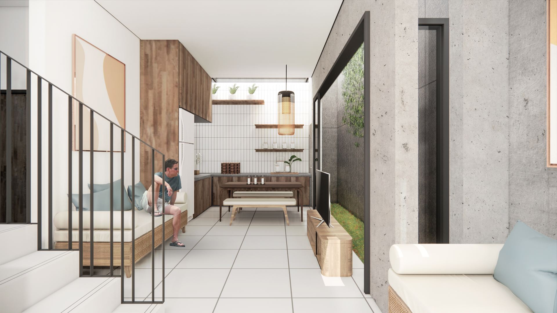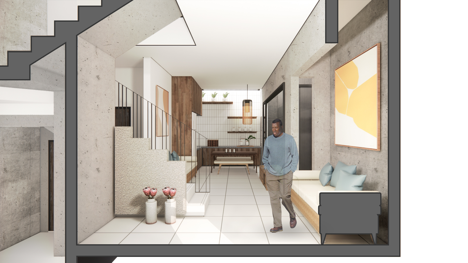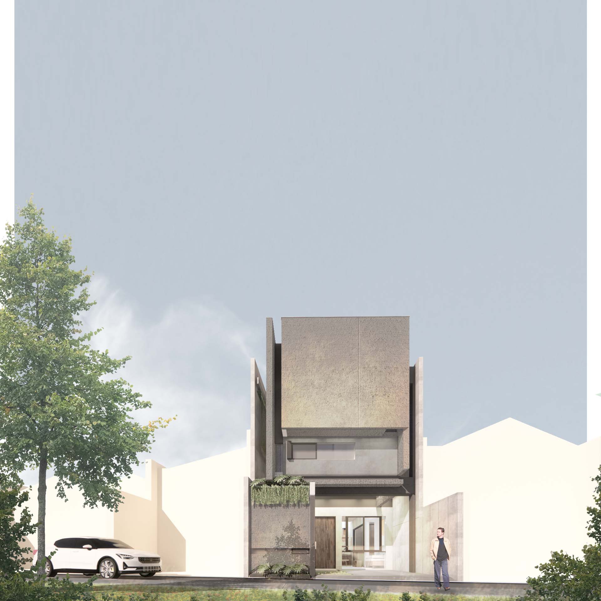 Cipayung House residential project is thoughtfully designed with a semi-industrial architectural approach, characterized by the use of exposed concrete finishes, clean structural lines, and a restrained material palette. The design harmonizes raw industrial aesthetics with the comfort and functionality required for modern family living with the support of Inner court garden that serves as a green oasis that brings nature into the heart of the home. This courtyard enhances natural ventilation, promotes cross-airflow, and allows abundant daylight to reach the interior spaces, creating a calm and airy living environment.