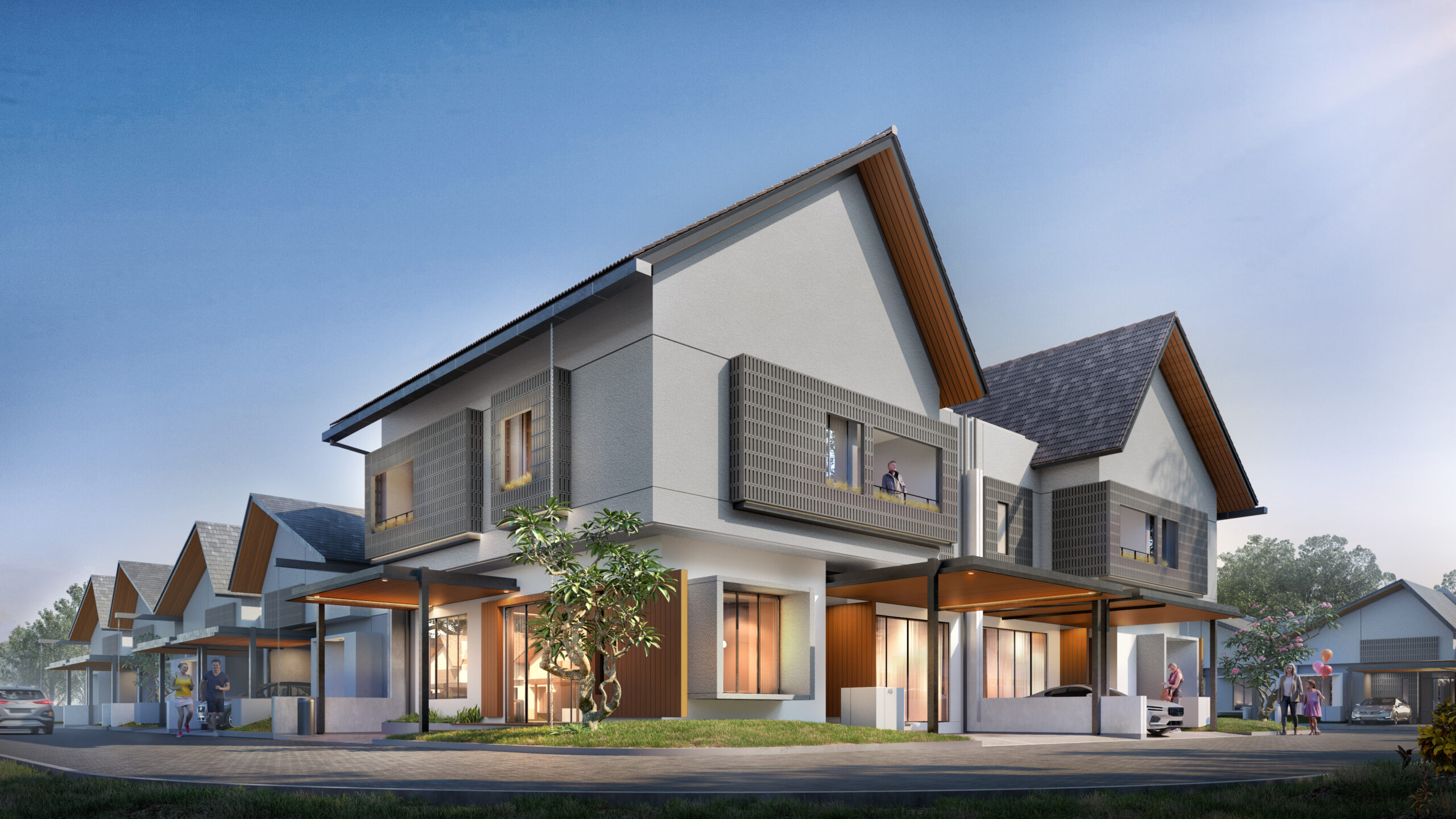 Parak Gadang House is a residential project that presents a two-storey residential house located in Sumatera Barat, designed with a tropical concept that responds harmoniously to the region’s climatic conditions and cultural context. The design integrates passive design strategies and natural elements to promote thermal comfort, energy efficiency, and a strong connection with nature. One of the defining features of the house is the incorporation of an inner court garden, which serves as a natural element for spatial orientation, ventilation, and natural lighting.